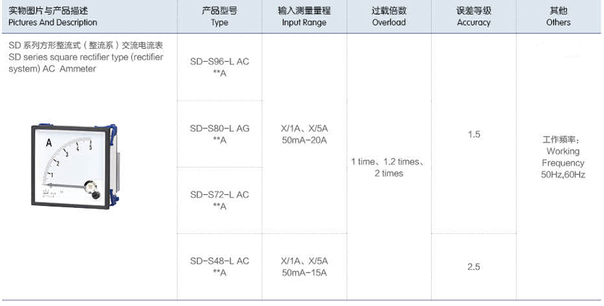 產(chǎn)品名稱:SD系列方形整流式交流電流表