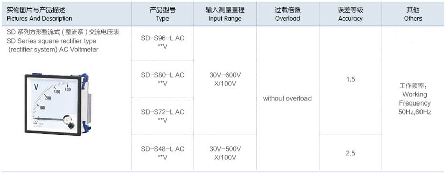 產(chǎn)品名稱:SD系列方形整流式交流電壓表