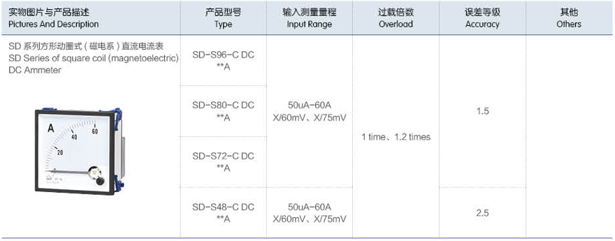 產(chǎn)品名稱(chēng):SD系列方形動(dòng)圈式直流電流表