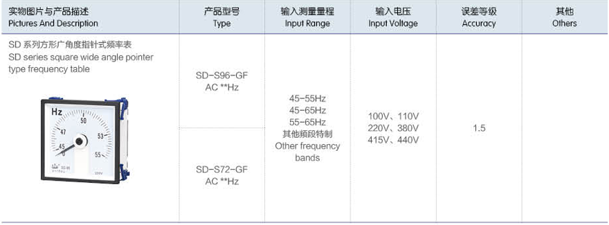 產(chǎn)品名稱:SD系列方形廣角度指針式頻率表