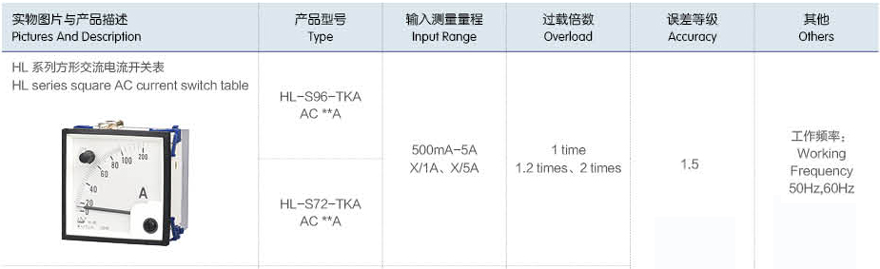 產(chǎn)品名稱:HL系列方形交流電流開(kāi)關(guān)表