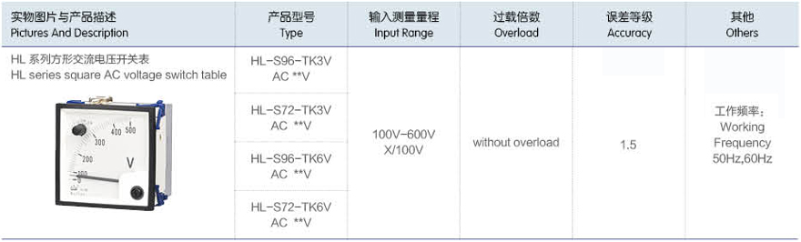 產(chǎn)品名稱:HL系列方形交流電壓開關(guān)表