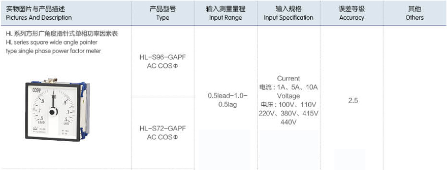 產(chǎn)品名稱:HL系列方形廣角度指針式單相功率因素表